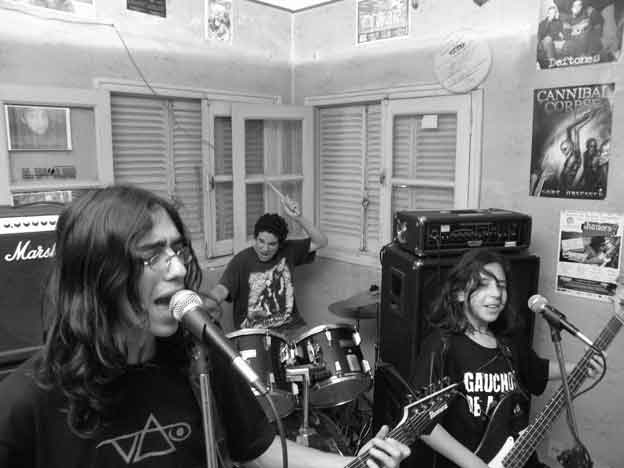 ![]() Esta es una entrevista especial por muchos motivos. GAUCHOS DE ACERO es un grupo de tres hermanos, niños que se dieron a conocer con el boca a boca, y que ahora arrasan en su país. Pero lo genial no es eso, es que son gente humilde que contestan con más cabeza y coherencia que muchos que van de divos. Han conseguido salir adelante con su esfuerzo, y sobretodo, han llevado el Metal a lugares donde ni los más grandes pueden. Con todos ustedes, el futuro: GAUCHOS DE ACERO. Era del Metal: Bueno, para empezar, quiero que os presentéis, y nos expliquéis un poco que es lo que hacéis. Emilio: Hola un gusto total poder hacer la entrevista esta, muchas gracias. Emilio Jorge: voz y guitarra, 16 años. Martín Jorge: bajo y guitarra, 12 años. Agustín Jorge: batería, 14 años. Gauchos de Acero es una banda de 3 hermanos que se formo en el año 2006. Era solo un hobbie, yo tenía mis bandas a parte y solo era por diversión. El sueño era conocer Buenos Aires, ya que nuestra familia no tenía presupuesto para llevarnos. Entonces salió un programa de televisión en donde llevaban bandas y decidimos filmar unos videos para participar. Nos encerramos en nuestra casa y empezamos a grabar, todos los equipos eran prestados y teníamos instrumentos muy económicos, pero ganas sobraban. El programa se dejó de hacer por lo que los videos quedaron sin sentido. Entonces para poder mostrarlos a los amigos decidimos subirlos a internet. Todo empezó con un tema colgado en youtube, una versión de Sepultura. ¿Qué pasó después de aquello? Este fue el tema que más dio que hablar, Martín tenía 8 años y Emilio 12. Fue uno de los temas que mandamos al programa, pero de pronto vimos que las visitas crecían y crecían, y comparado con las otras bandas eran muy grandes, para nosotros era muy raro ya que no sabíamos que íbamos a tener tanta exposición, solo pensábamos que nos iban a ver nuestros conocidos. Yo os descubrí con la versión de "The Trooper" de IRON MAIDEN, la verdad es que me emocioné, sobretodo el ver a vuestra hermana pequeña haciendo headbanging. ¿También tiene el metal metido en vena? La grabación del video de "The Trooper" también fue espontánea, estábamos grabando la canción y Carlita, que es nuestra sobrina en realidad, estaba coreando la canción y tambaleándose al ritmo, en ese momento tenía 4 años. Nosotros la vimos y le dijimos "veni Carlita, salí en el video", como cosa del momento y nunca pensamos que a la gente le iba a gustar tanto. Ella sabe todas nuestras canciones y siempre escuchamos Metal todos juntos. Supongo que el contar con el apoyo de unos padres es básico para llevar adelante vuestro proyecto. ¿De qué forma os han ayudado? ¿Vuestros padres son metaleros? Contar con el apoyo de los padres fue fundamental, ya que de un día para el otro de estar en la pieza (ndr: habitación) encerrado tocando nos tocó estar en lugares muy difíciles de llegar muy de golpe. Estar en festivales grandes de Argentina como Cosquin Rock, Estadio Obras, o estar en programas de televisión de Buenos Aires es algo que fue nuevo para mi y para mis padres. Necesitábamos que estuvieran con nosotros. Ellos siempre están ahí antes y después, mi viejo siempre fue del palo, tiene vinilos de Metal y siempre estuvo en la onda desde nuestros comienzos; a mi vieja la fuimos haciendo, ella era la típica "romántica'', pero de a poco la fuimos llevando, y hoy en día es Metal al cien por ciento. y es bueno porque conocen la movida y las cosas que tiene por ahí buenas y malas. Maravillosa historia. Bueno, a partir de los videos de youtube, vais a un concurso de nuevos talentos en Argentina, y lo ganáis creo, al menos yo os vi en la final. ¿Cómo fue la experiencia? Nuestro paso por "Talento Argentino" fue muy importante para nosotros, ya que gracias a ese medio mucha gente conoció lo que es el Heavy Metal, ya que la cultura argentina es cumbia y folclore (ndr - la cultura española es pachanga y maltratar animales básicamente, así que no te quejes), y poder haber metido el Heavy Metal fue una misión cumplida. La experiencia también nos sirvió muchísimo, conocimos mucha gente buena y eso te ayuda bastante. No llegamos a ganar ya que terminó ganando un contador de chistes, pero el objetivo era poder salir de Salta, llegar a ser una banda reconocida desde Salta en Argentina es imposible. Haber participado ahí nos dio una mano tremenda. El objetivo es sacar la basura de música que nos impone la sociedad, y dar el respeto que se merece el Heavy Metal. (ndr - Amén hermano, parece mentira que con tu edad tengas que dar lecciones a tanta gente inútil). Hacéis versiones de METALLICA, IRON MAIDEN y otros, pero la que más me sorprendió, por su dificultad, fue la versión de "Burn" de DEEP PURPLE. ¿Hay alguna versión que se os haya resistido, alguna que digáis: es imposible hacerla? Siempre nos gustaron los desafíos con las canciones, llegamos al borde siempre. Yo creo que todo es cuestión de ponerle todas las ganas del mundo. Obvio que hay cosas en la música que son muy difíciles, pero tratamos como sea de sacarlas ya que es un desafío y algo que nos gusta mucho. ¿Tenéis algún tipo de formación musical? ¿Cuántas horas ensayáis al día? Somos autodidactas todos, siempre nos gustó así, hoy en día el profesor de música no te brinda lo que un músico realmente necesita. Ensayamos poco, no nos gusta estar rompiéndonos la cabeza. El mismísimo Bruce Dickinson, cantó un tema con vosotros para la próxima película del grupo. ¿Cómo surgió esta colaboración? ¿Cómo os sentisteis tocando con alguien como él? Todo esto surgió por medio de youtube y el myspace de Cio (ndr - su manager), el gran Sam Dunn nos llamó para participar de su documental y fue una experiencia inolvidable. Nosotros solo estábamos emocionados de haber sido convocado por Sam Dunn y por poder ver por primera vez a IRON MAIDEN en vivo ya que Salta está muy alejado de Buenos Ai
